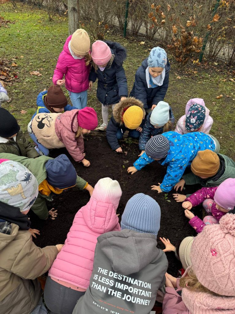 #kwiatowebombardowanie🌷🪻 Grupa Krecików z zaangażowaniem wzięła udział w zaplanowanych działaniach w ramach „Kwiatowego bombardowania”. Dzieci wysadziły przyniesione cebulki, a następnie zadbały o jesienne prace w ogródeczku, starannie przygotowując go na wiosnę. Teraz pozostaje cierpliwie czekać na pierwsze wiosenne oznaki i efekty wspólnej pracy.