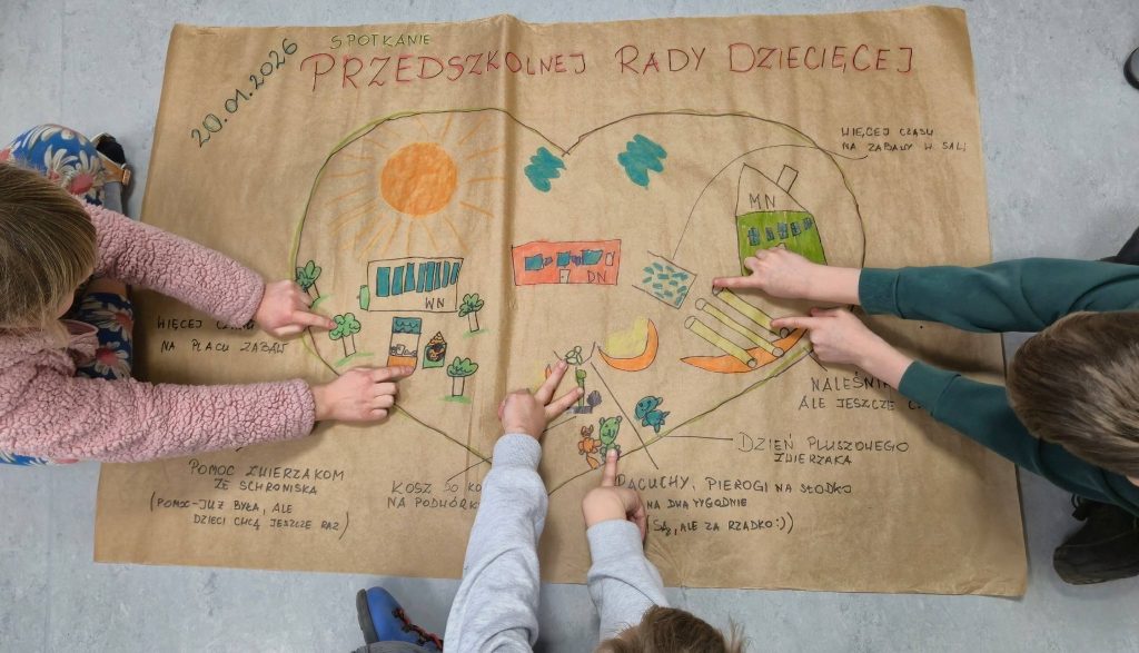 #PrzedszkolnaRadaDzieci Wybrani przedstawiciele – Ludwik, Ignacy i Izabela – przypomnieli swoje postulaty oraz omówili, które z nich zostały już zrealizowane. Dzieci zauważyły, że wiele zgłaszanych przez nich pomysłów faktycznie zostało wprowadzonych w przedszkolu 🏫✨. Wspólnie zastanawialiśmy się również, które postulaty są jeszcze do realizacji 🤔. Wszystkie pomysły i wnioski dzieci przedstawiły graficznie, co uczyniło spotkanie bardzo twórczym i angażującym. W spotkaniu aktywnie uczestniczyli wszyscy przedstawiciele Rady 🤝😊.